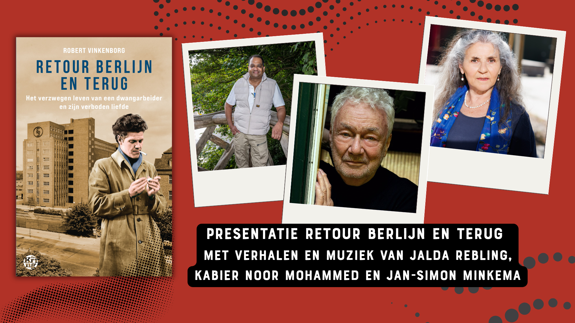 Op 12 april presenteert de Hoornse journalist en auteur Robert Vinkenborg in Theater Het Pakhuis zijn nieuwe boek Retour Berlijn en terug. Rond deze verschijning wordt een bijzondere avond georganiseerd waarin muziek, verhalen en persoonlijke geschiedenis samenkomen.